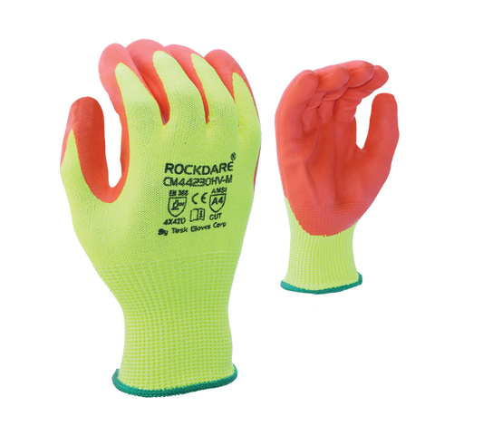 Task Cutman Hi-Viz HDPE Glove w/ Orange Foam Nitrile Coated Palm - ANSI Cut Level A4